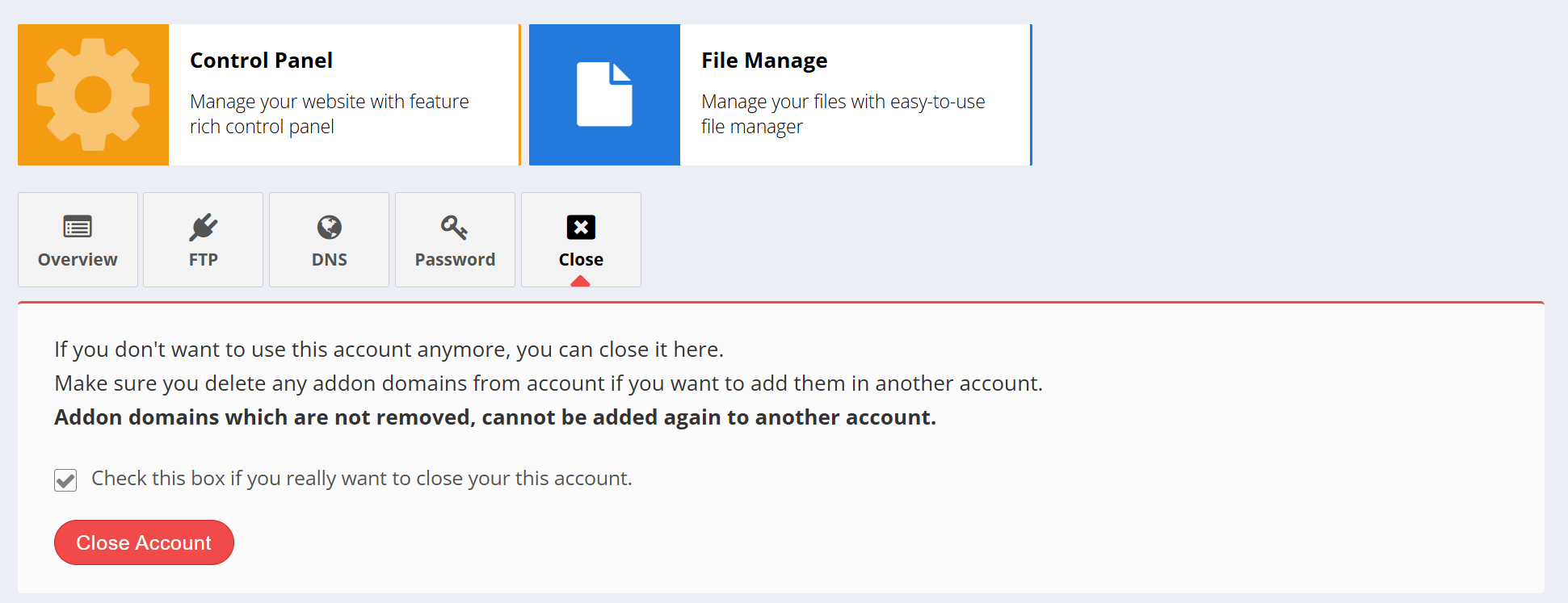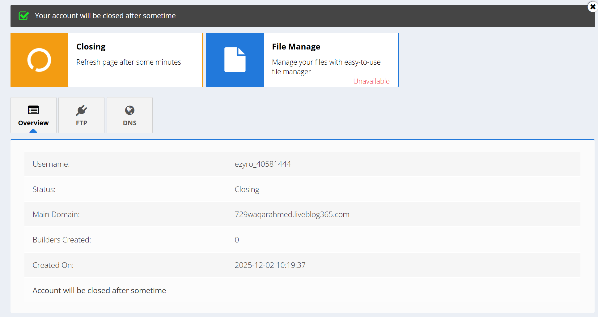 Your account has been marked for deletion. It will be automatically deleted after all your hosting accounts are completely removed.